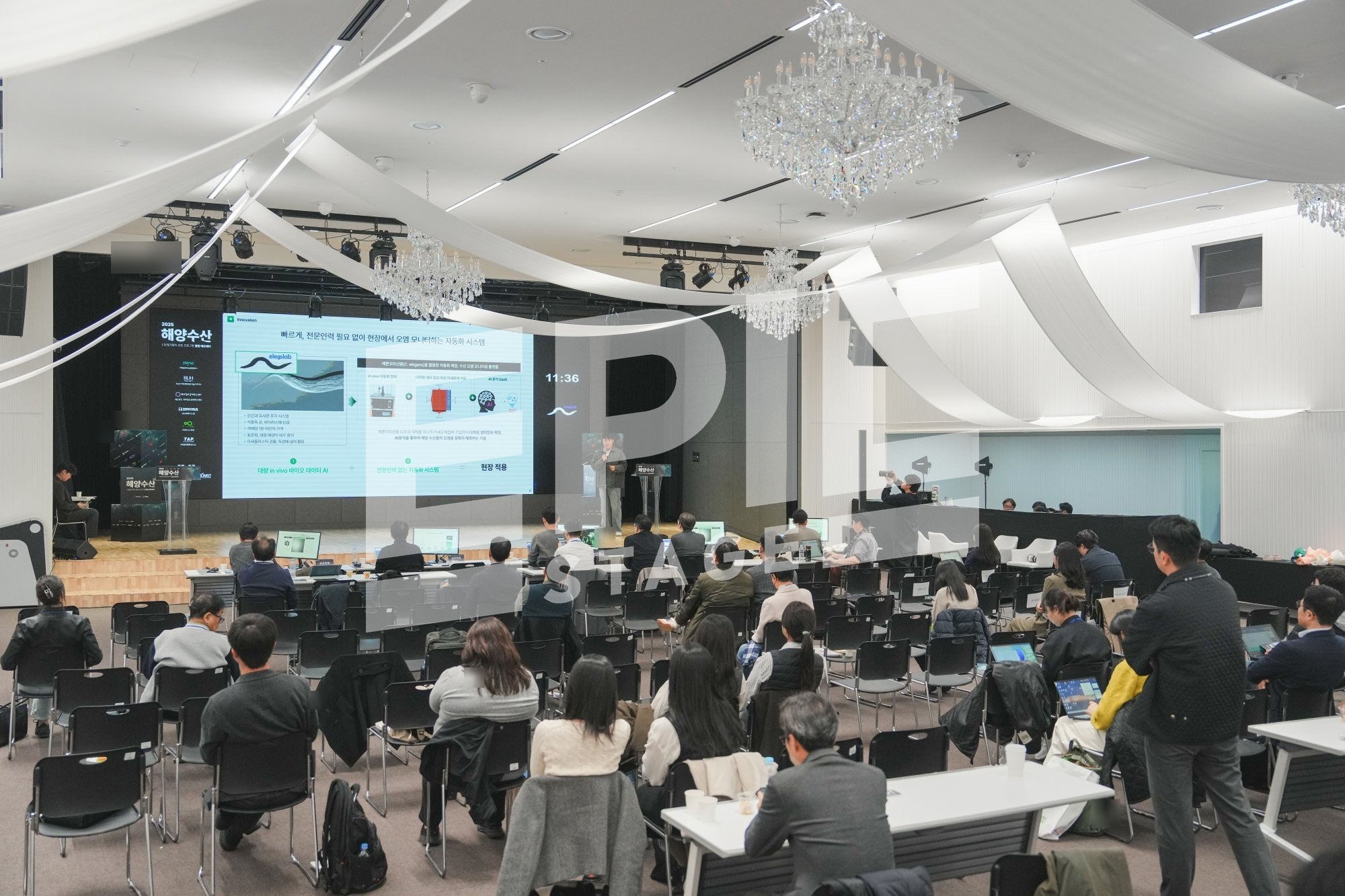 │ (발표 스크린 + 연단) │